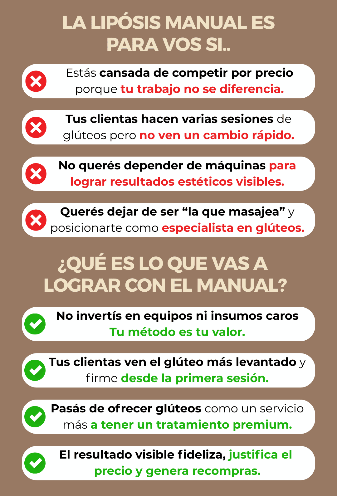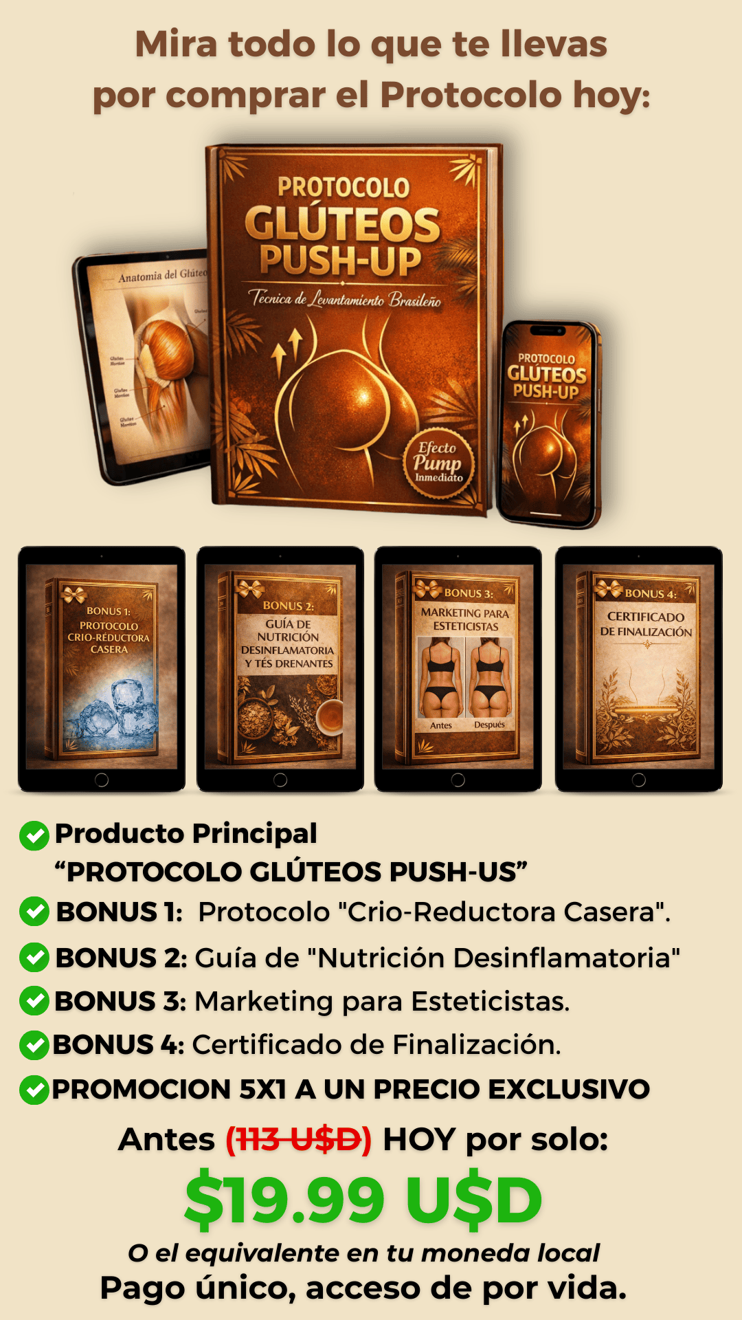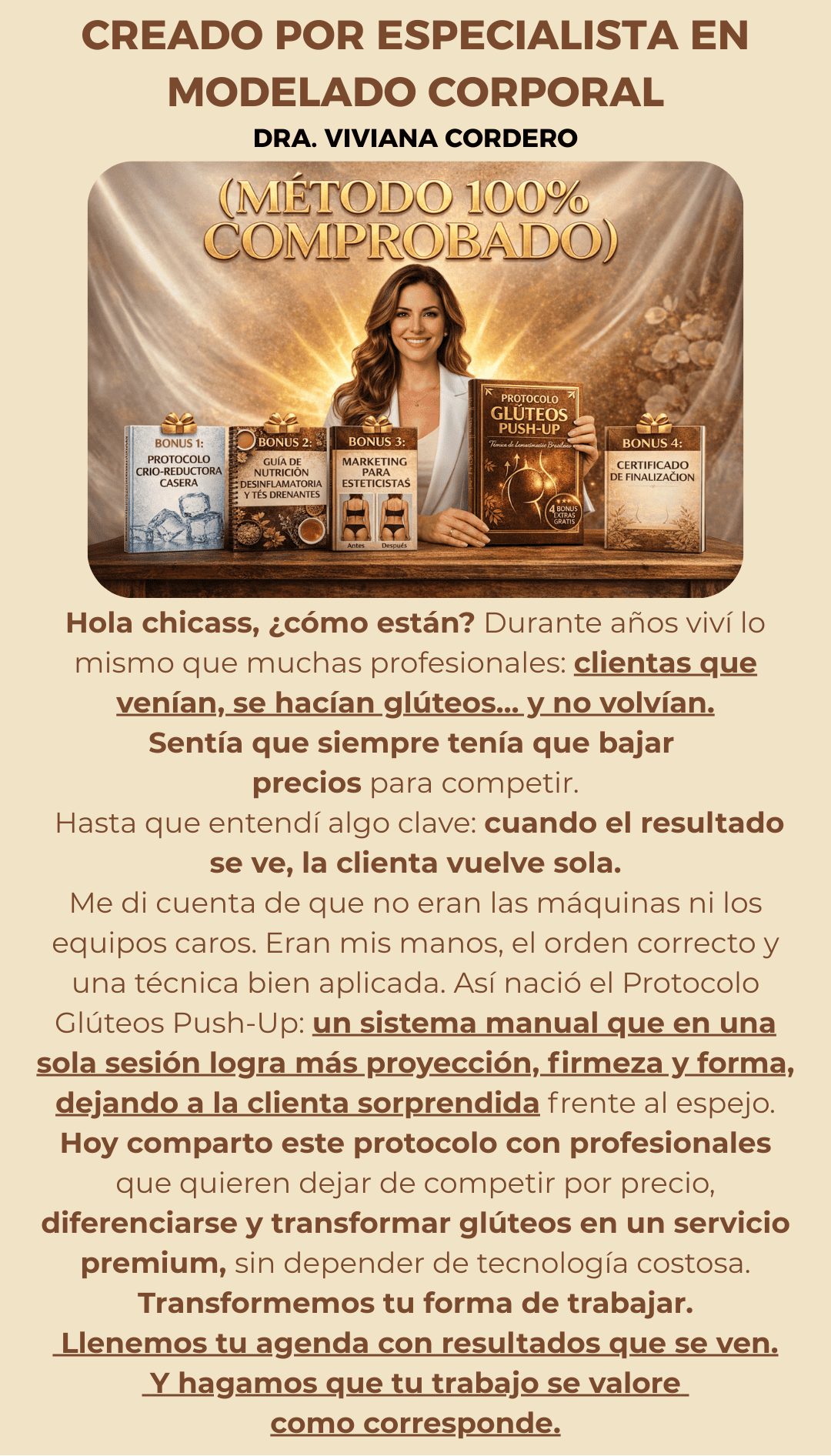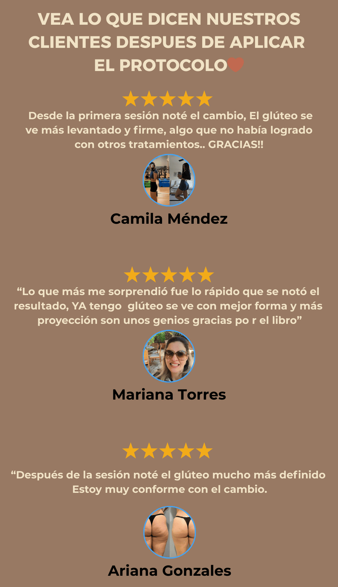 Se muestra desde la posición de las manos hasta la dirección exacta de cada maniobra, para que cualquier persona —principiante o profesional— pueda replicarlo y lograr glúteos más firmes, levantados y definidos desde las primeras aplicaciones.