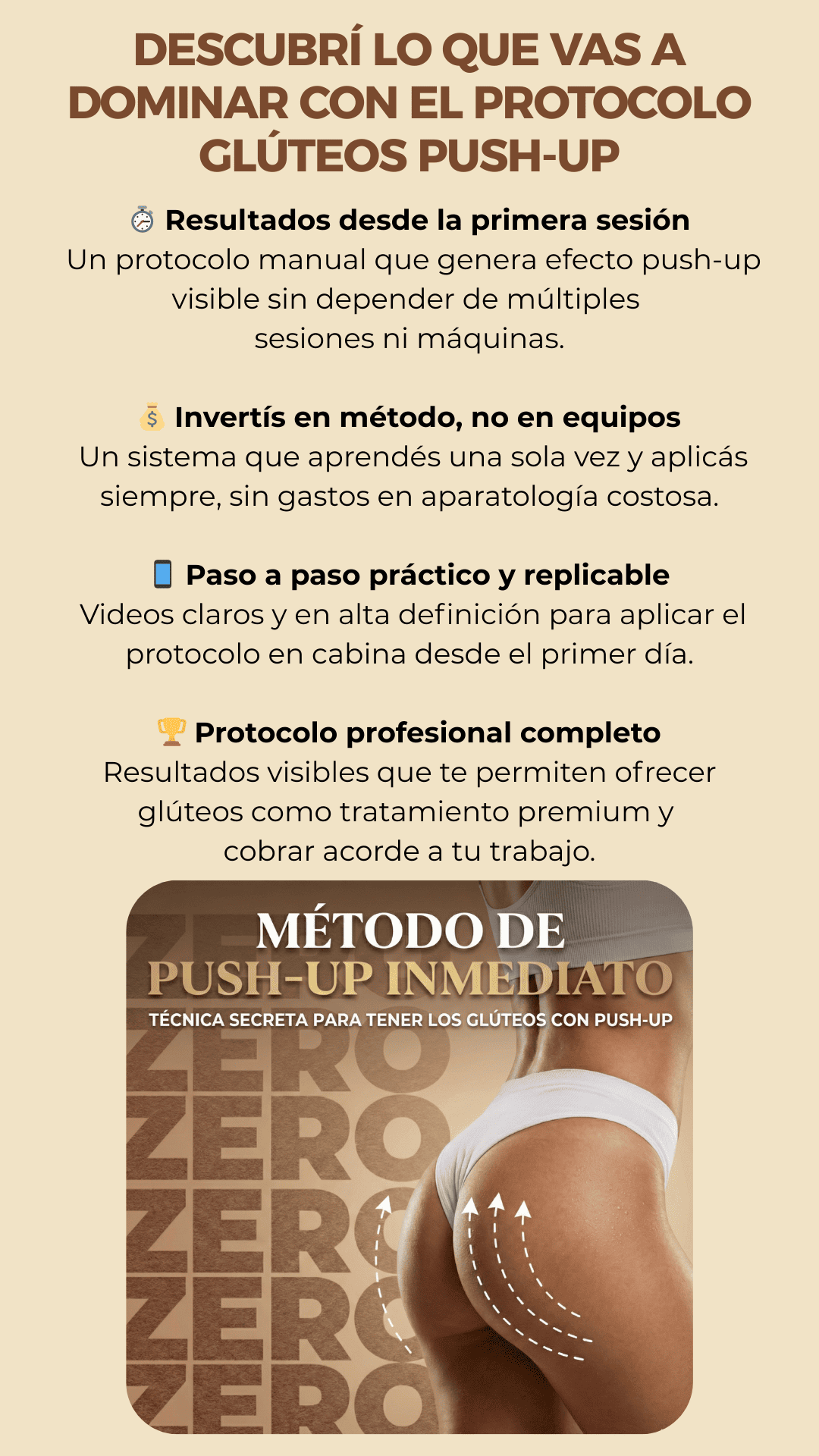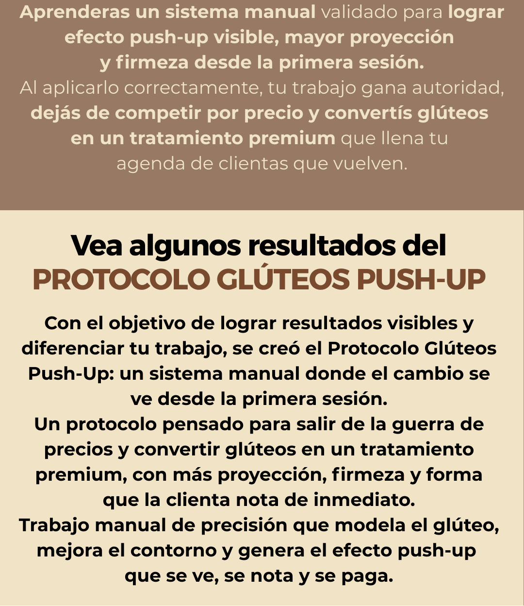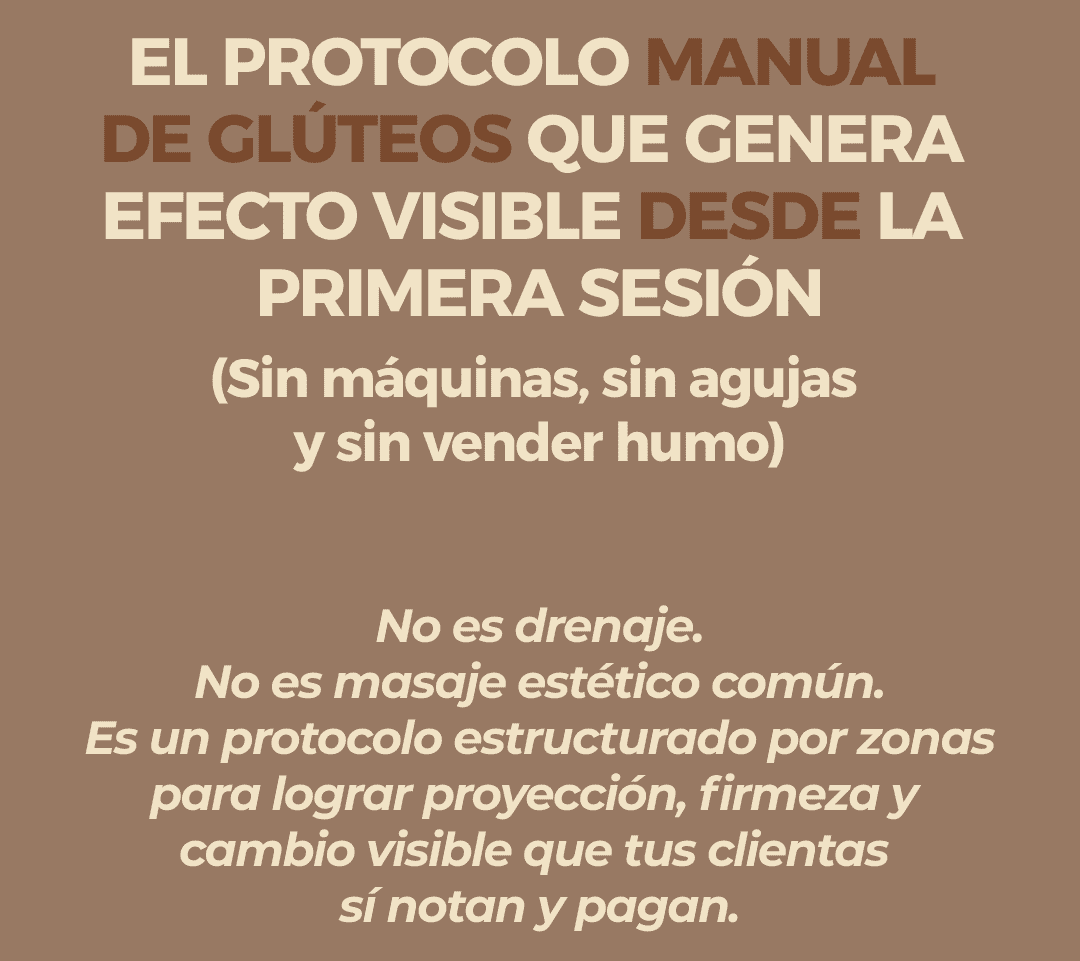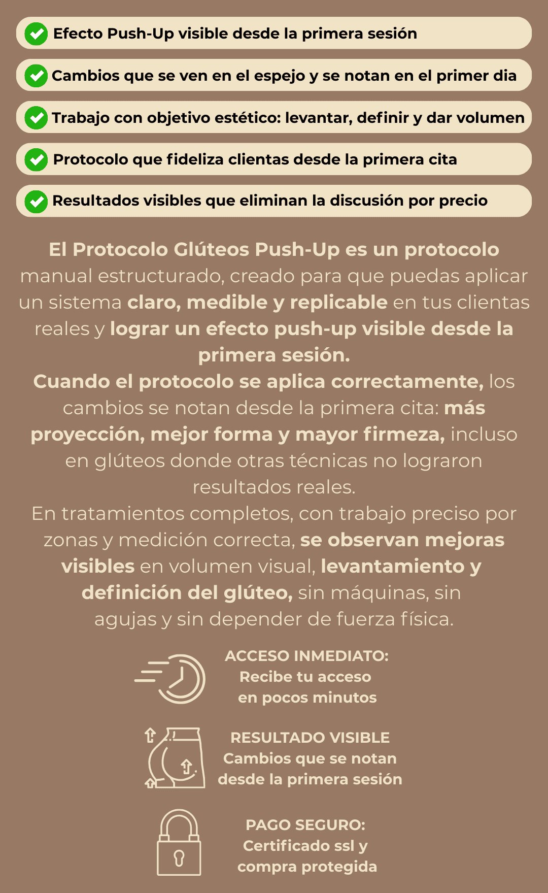 Este protocolo te permite ofrecer glúteos como un tratamiento premium, con un argumento claro: cambio visible desde la primera sesión.